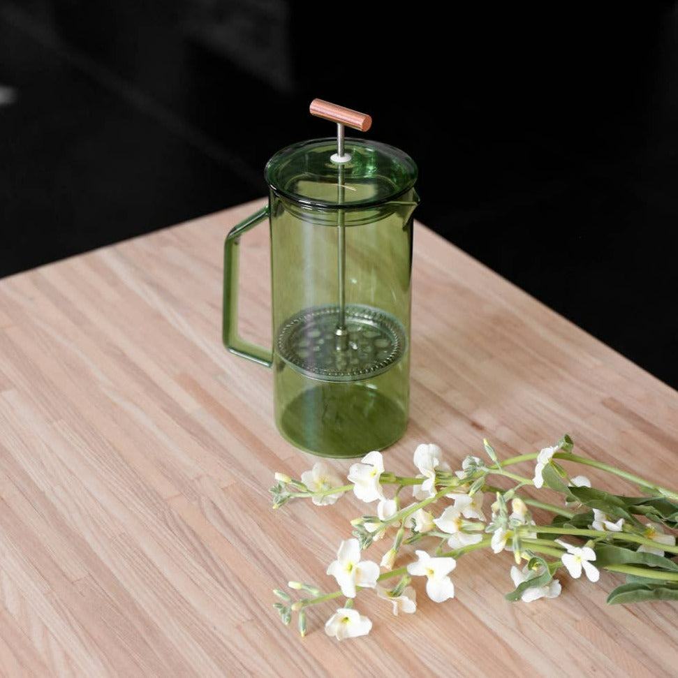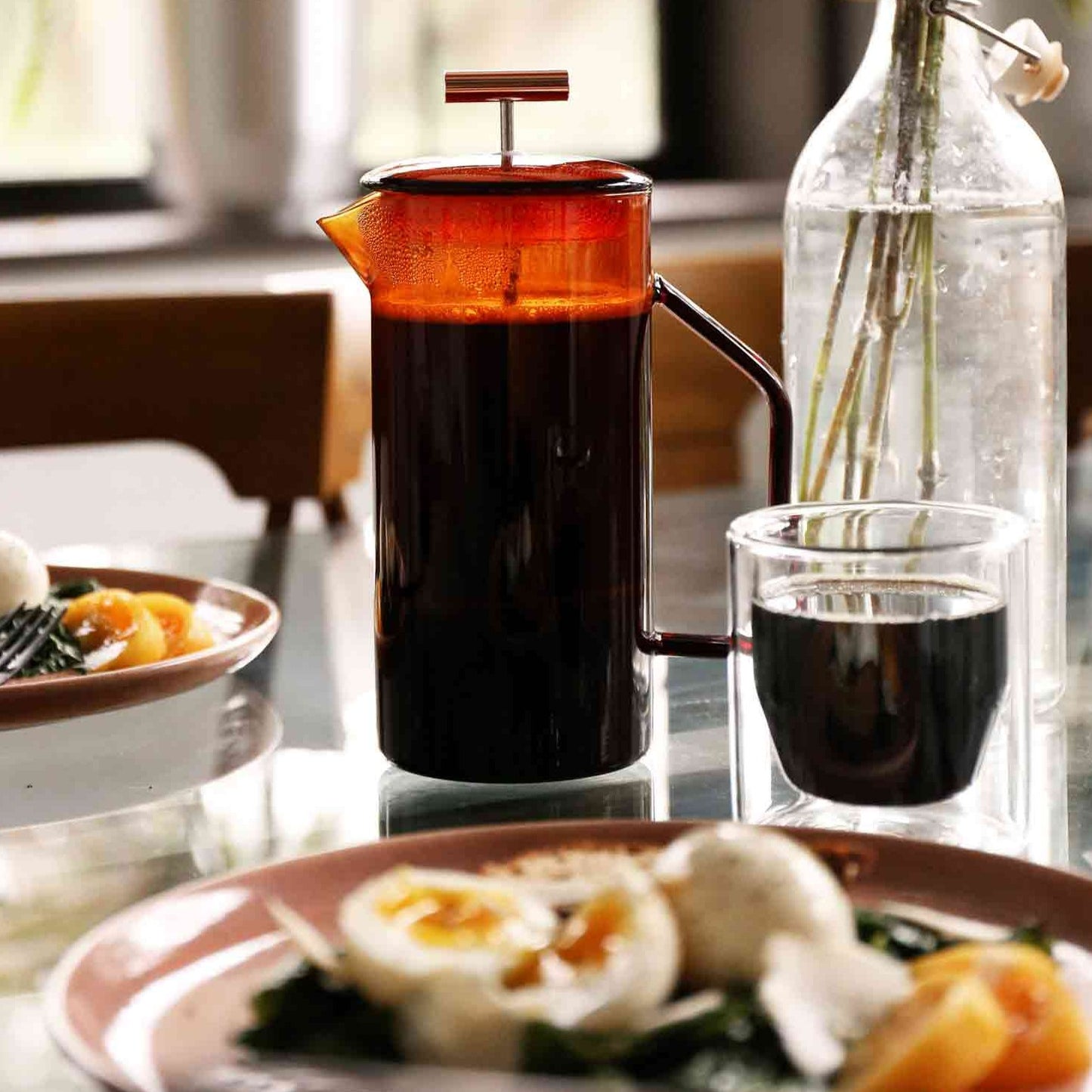 Crafted from heat-resistant borosilicate glass, this French Press brews full-bodied coffee or tea using the classic French Press method — without the need for rubber or plastic components. A durable, elegant update to a timeless design.