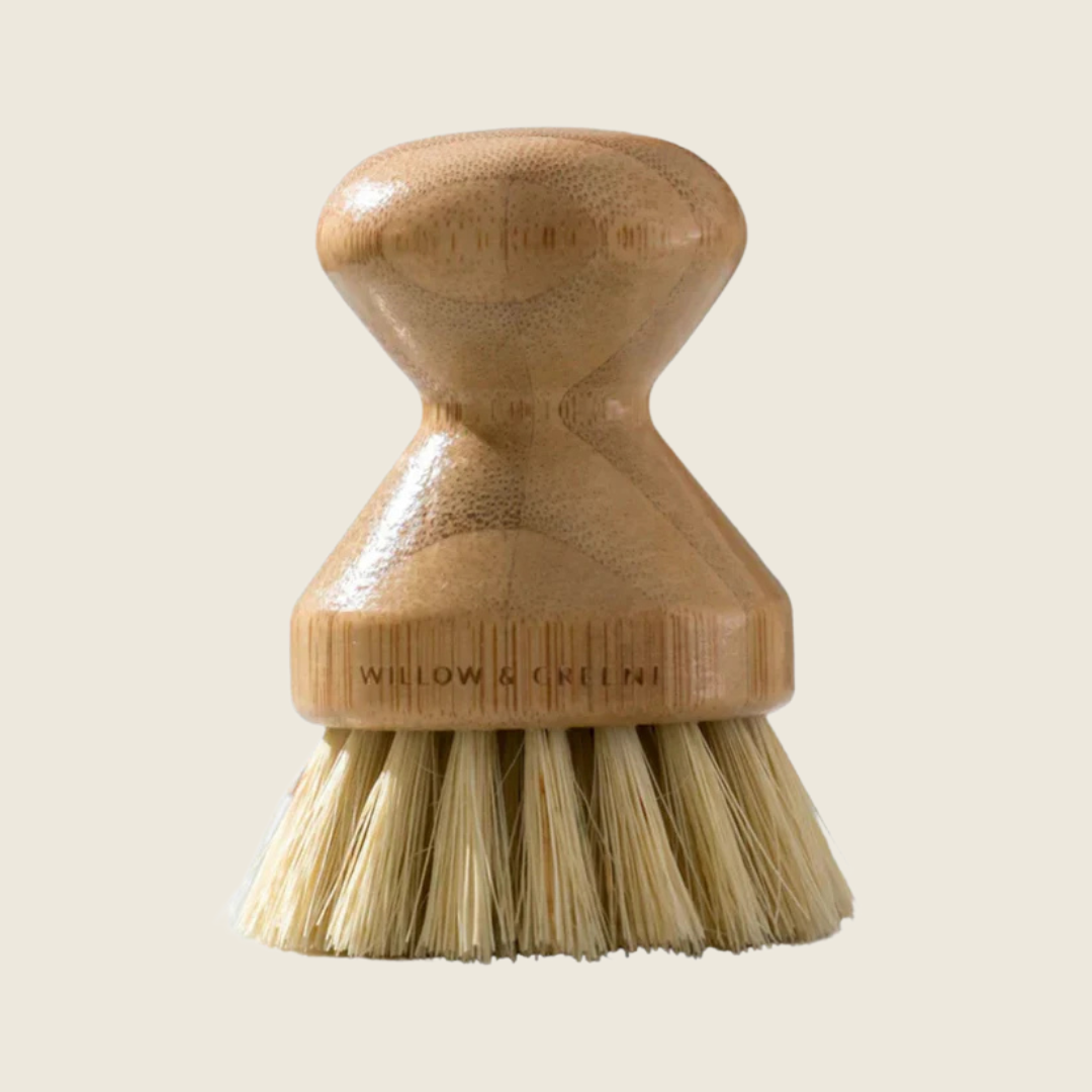 Stylish and functional, this bamboo brush has natural bristles made from vegetable fibers that are gentle on dishes and effective at removing grease and grime.