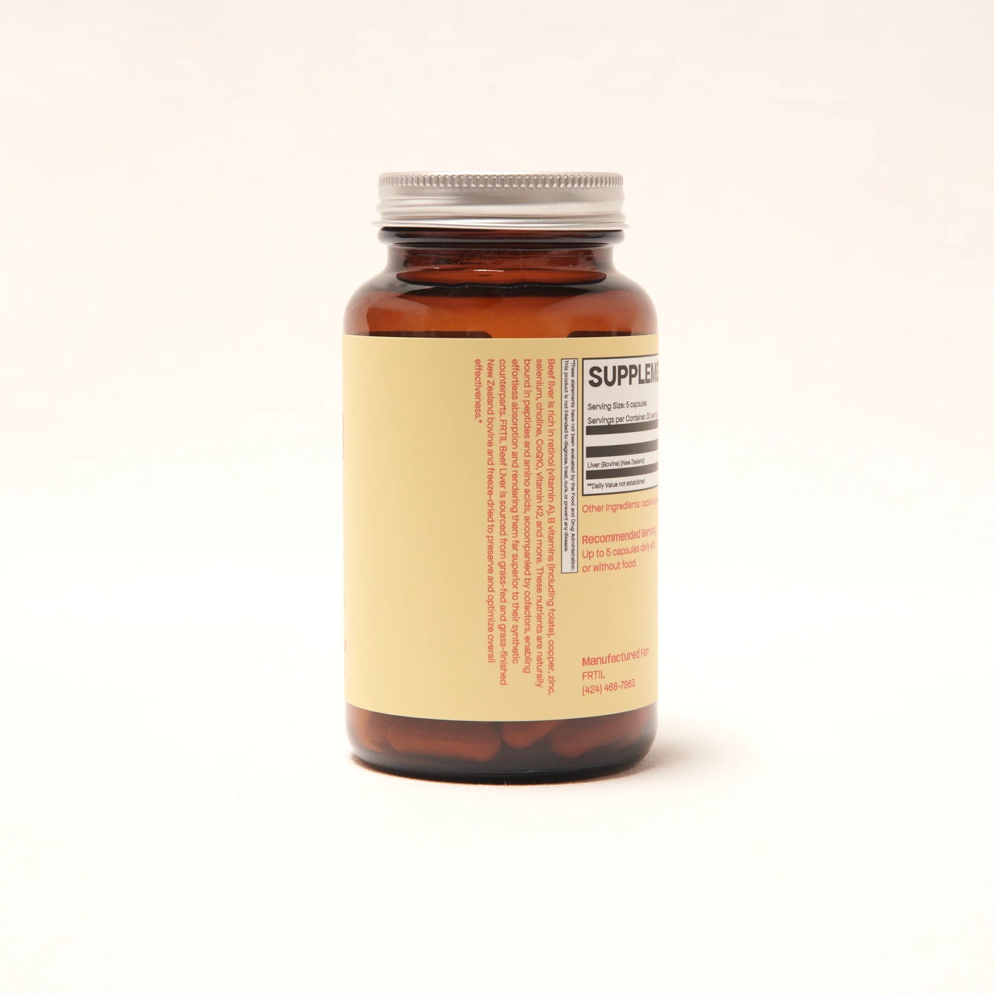 Beef liver is rich in retinol (vitamin A), B vitamins (including folate), copper, zinc, selenium, choline, CoQ10, vitamin K2, and more. These nutrients are naturally bound in peptides and amino acids, accompanied by cofactors, enabling effortless absorption and rendering them far superior to their synthetic counterparts. FRTIL beef liver is sourced from grass-fed and grass-finished New Zealand bovine and freeze-dried to preserve and optimize overall effectiveness.*