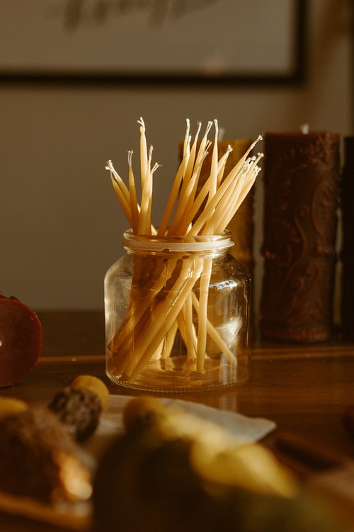 Beautiful 10-pack of tiny taper beeswax candles! Each candle is approximately 6.5” tall and burns for approximately 1 hour.