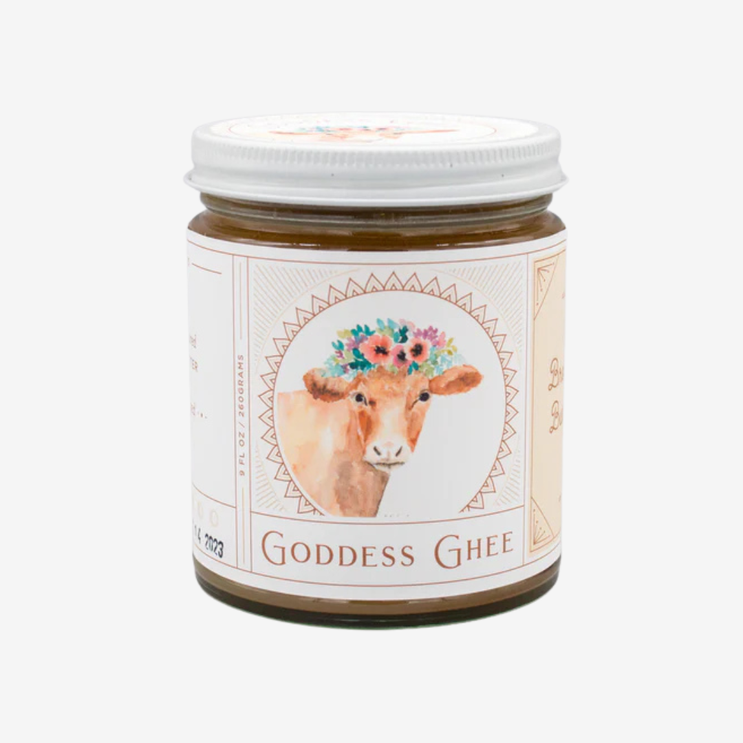 Ghee made from cultured butter from the milk of grass-fed cows is exceptionally healthy! It is loaded with vitamins A, D, E, and K. It is also rich in butyric acid helpful for supporting healthy gut microbiomes & balanced gastrointestinal system. Ghee made from organic butter sourced from pasture-raised cows is also a natural source of conjugated linolenic acid (CLA), which is indicated to slow the progression of heart disease and some types of cancer. Ghee sourced from pastured cows additionally contains Omega 3 and Omega 9 fatty acids, which most people are generally deficient in. These fatty acids have been indicated as crucial to proper hydration, literally helping our cells to retain more water. Ghee is remarkably bioavailable, long prized for increasing nutrient absorption of fat-soluble vitamins and minerals from the foods and herbs with which it is paired. Actually able to pass through the lipid membranes of our cells, the nutrients that accompany foods and herbs cooked in, paired with, or infused into ghee can penetrate deeply into our bodies. For this reason, ghee has a long history of being used as a carrier oil (menstruum) for medicinal, herbal preparations.