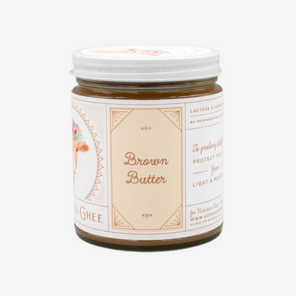Brown Butter Ghee is an extra caramelized version of our traditional grass-fed ghee. It is rendered from a longer cooking process that creates a deeper, nutty, rich flavor without any added ingredients. Versatile and delectable, the Brown Butter has all the same uses as our traditional ghee plus a rich flavor. Try cooking and using this ghee and see for yourself why so many of our customers choose Brown Butter as their staple!