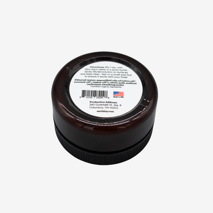 Mix 1 tsp. (about the size of a small marble or blueberry) with 16 oz warm water in a spray bottle. Shake to combine. Spray diluted solution on surfaces and wipe clean. Test on a small area first to ensure it works with your finish.