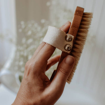 Dry brushing is a simple, gentle method of exfoliation that helps remove dead skin cells, support healthy circulation, and contribute to firmer skin.