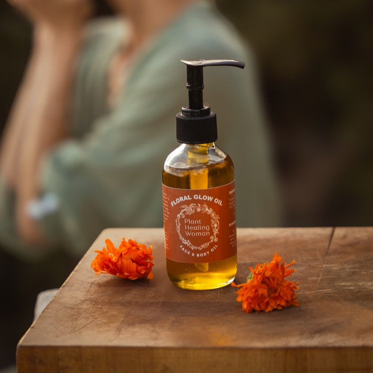 Floral Glow Oil is a whole plant extract of organic & homegrown Calendula flowers.
