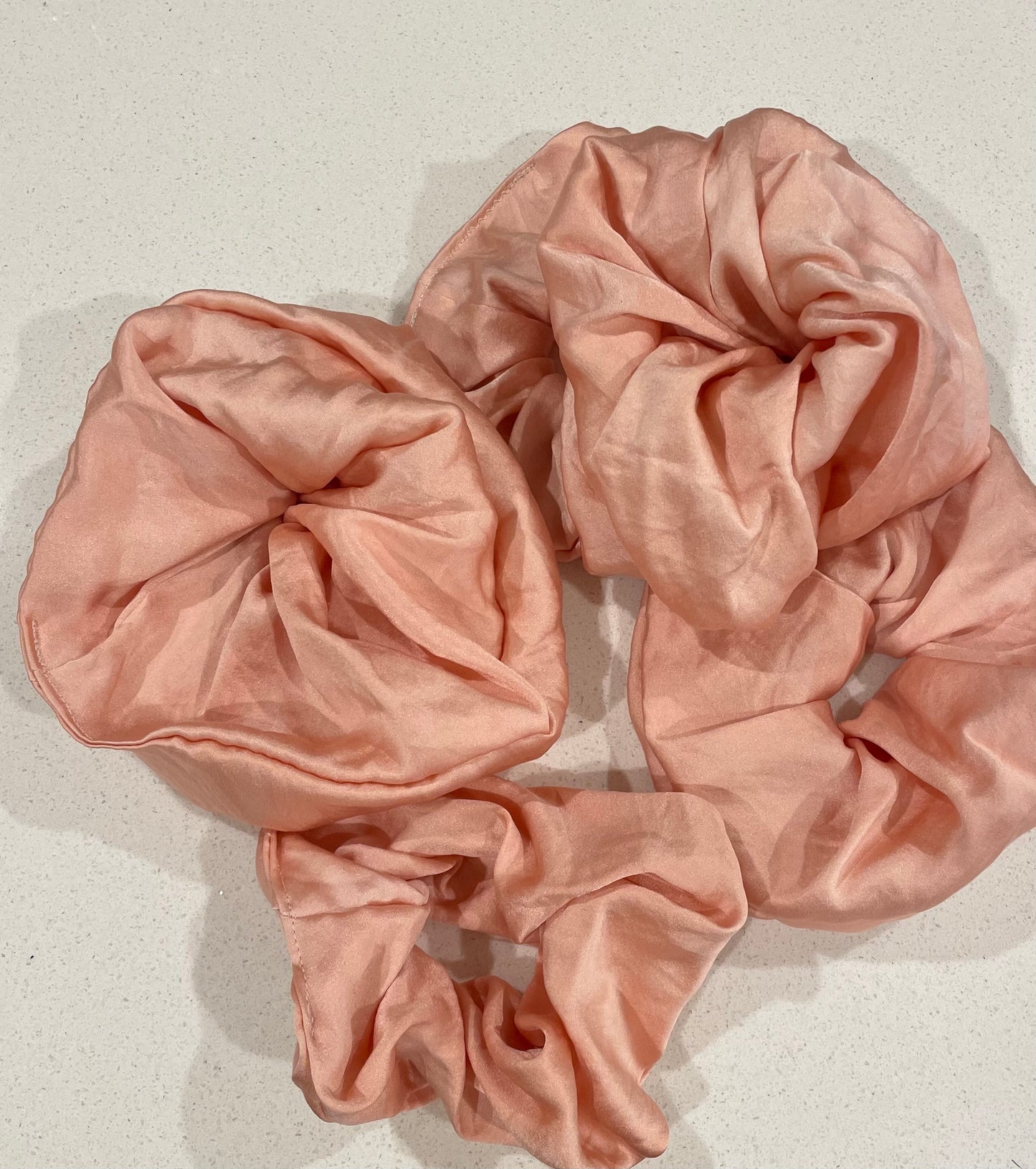 Apricot Pale Pink Scrunchies: Hand dyed with Cutch