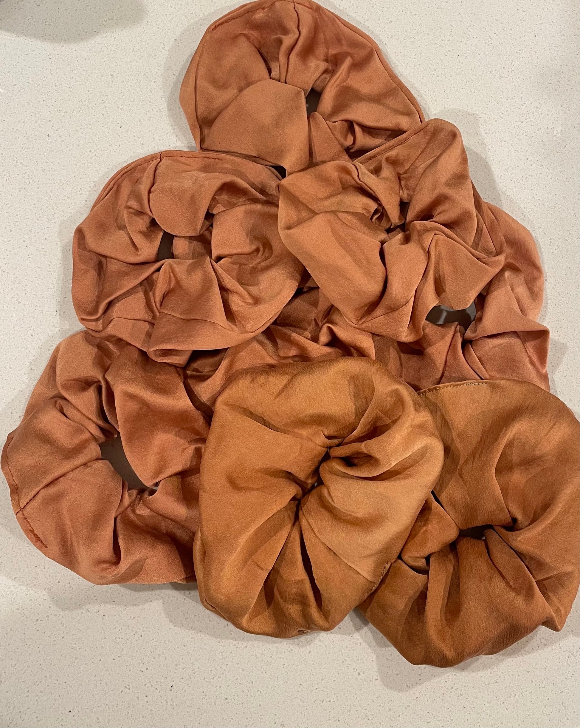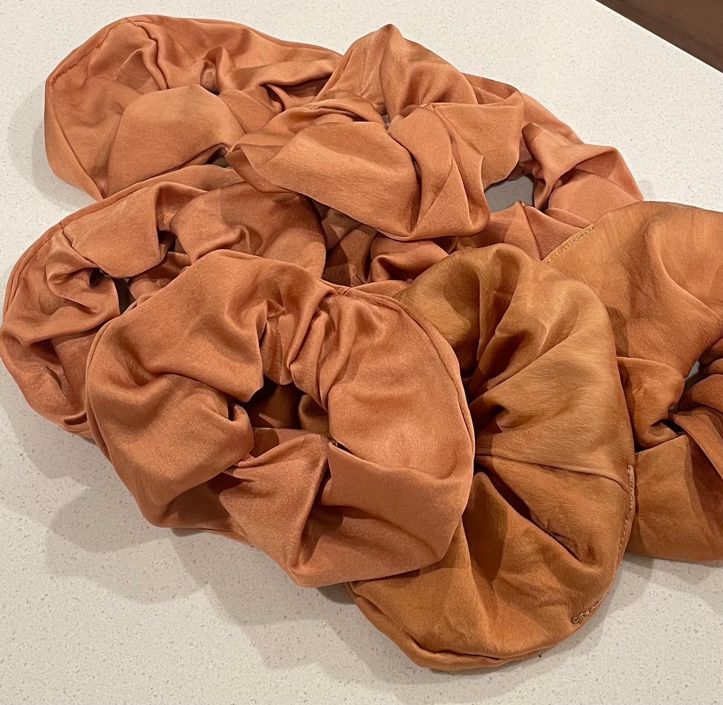 Cinnamon Scrunchies: Hand dyed with Cutch Bark