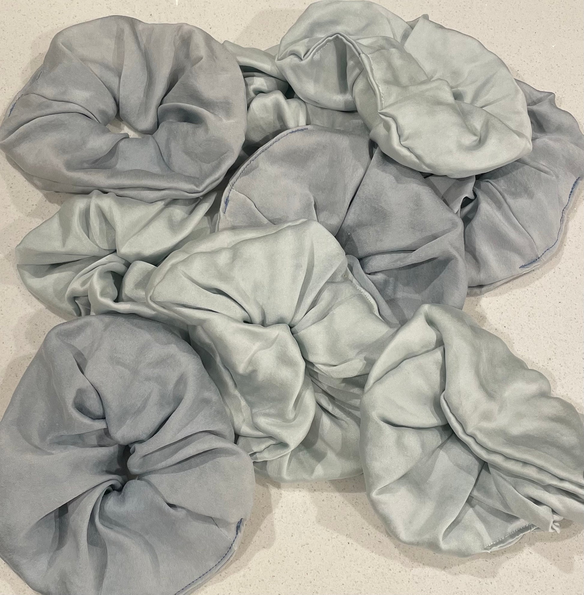 Sky-Blue Scrunchies: Hand dyed with indigo