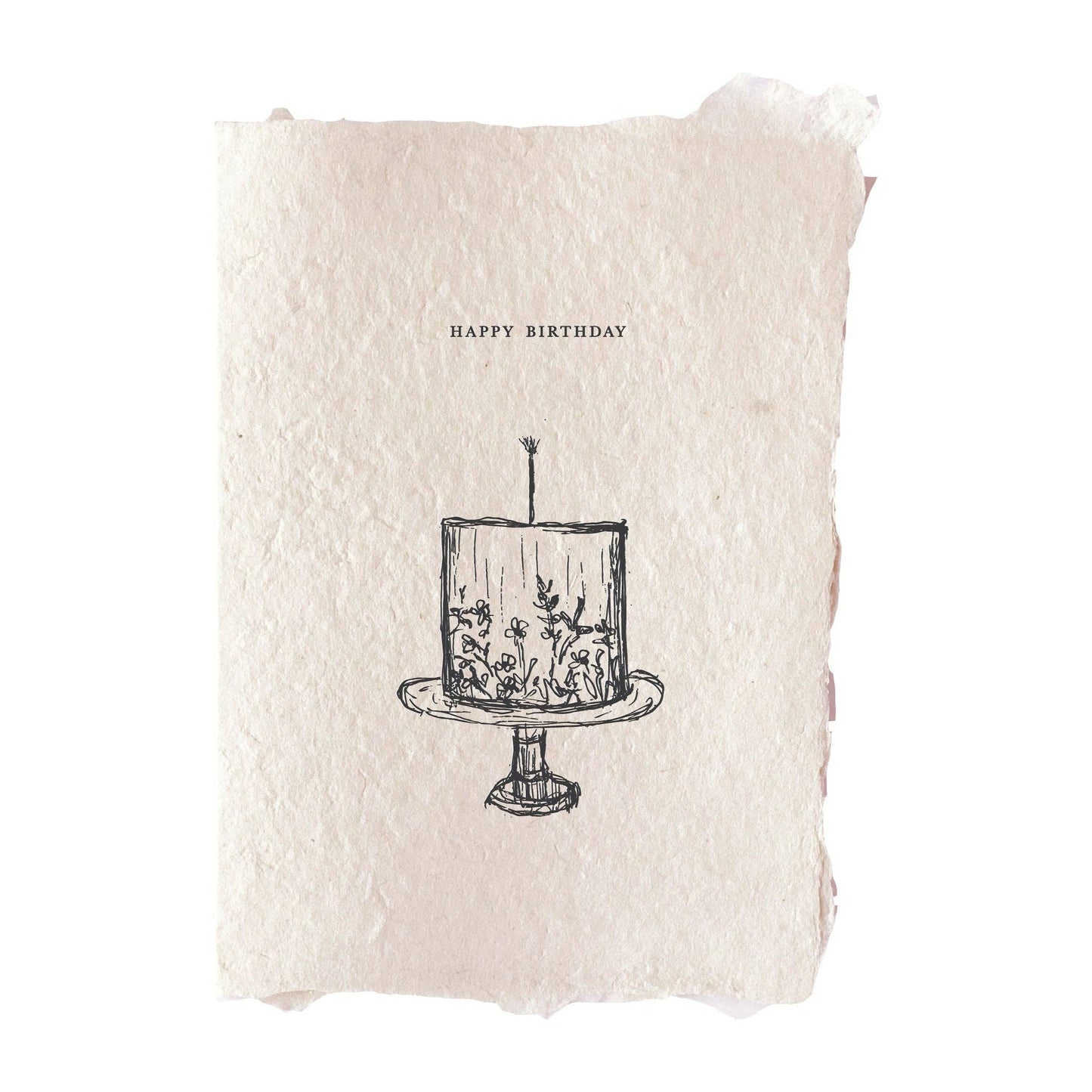 The original farmette birthday card! A much-beloved beflowered birthday cake with a simple happy birthday.