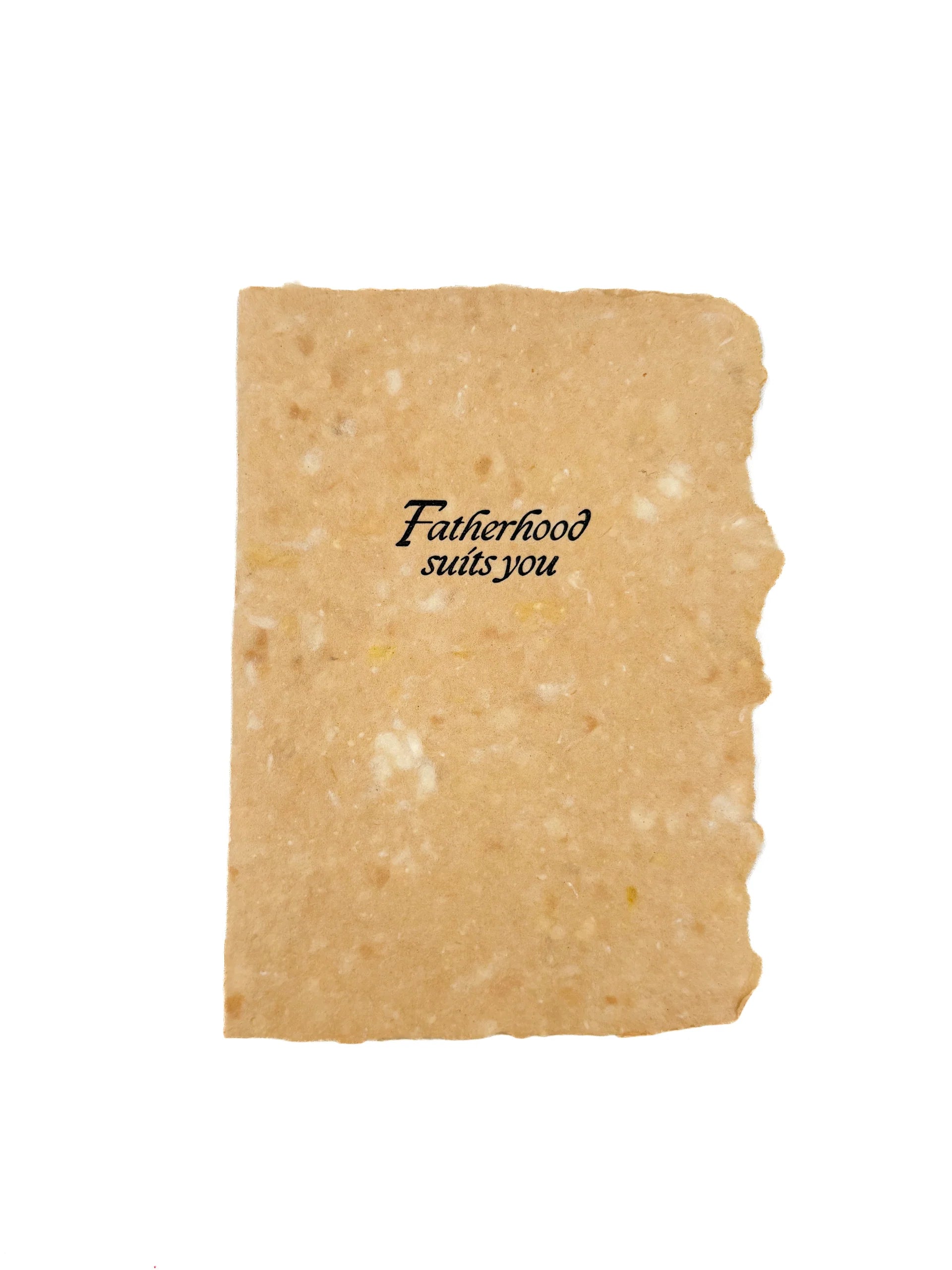 “Fatherhood suits you” - black letterpress on honey yellow paper