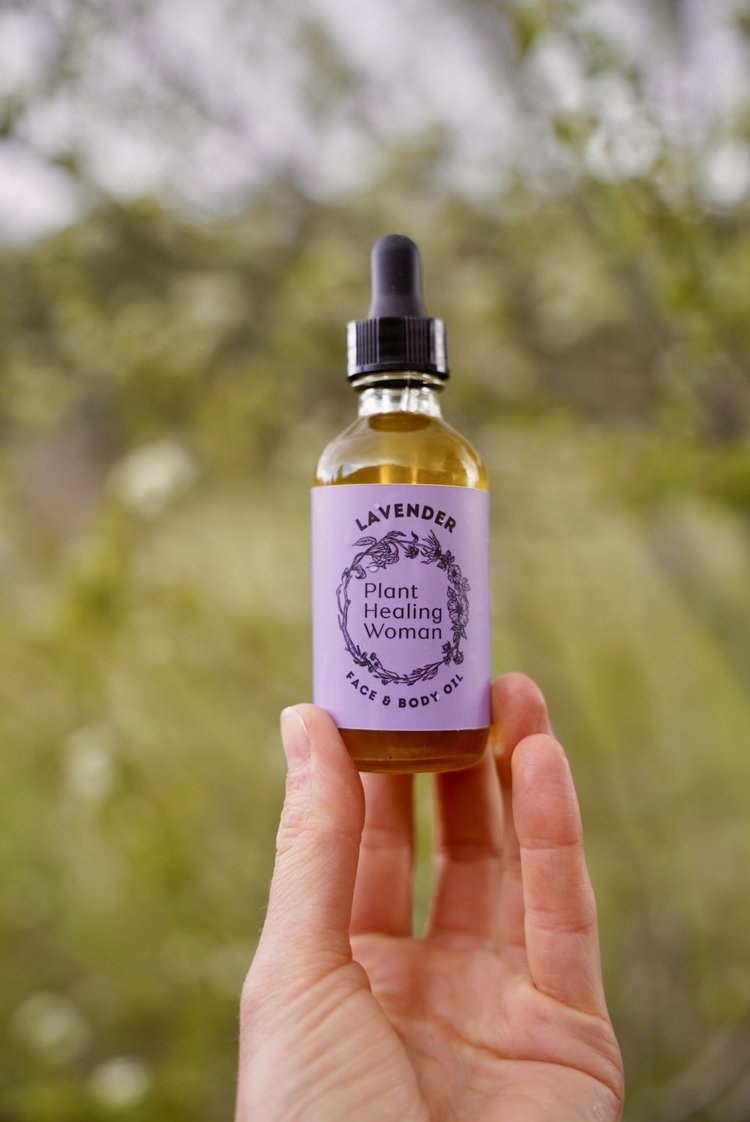 Using herbal oils daily has been a powerful tool for many to cultivate a relationship with yourself as a healer. Lavender Oil is a soothing, grounding herbal oil that is used to relieve stress, treat burns and rashes, increase circulation, and promote rest.