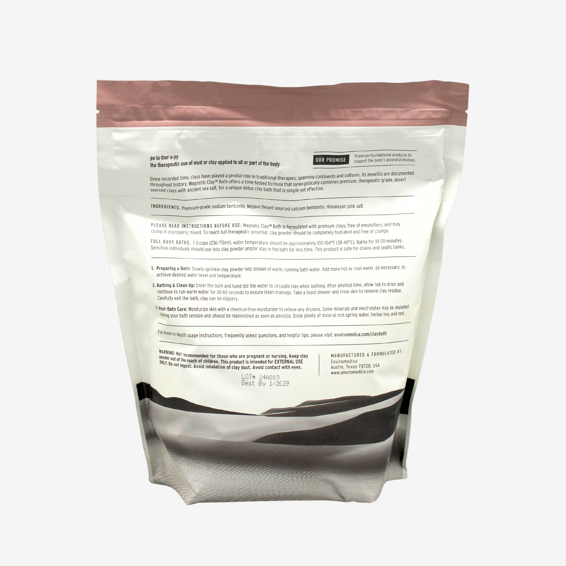 Description: Experience the detoxifying power of immersing your body in mineral-rich clay. Magnetic Clay™ Bath combines the highest quality desert-sourced healing clays with ancient sea salt to help draw toxins and impurities while you relax and restore.
