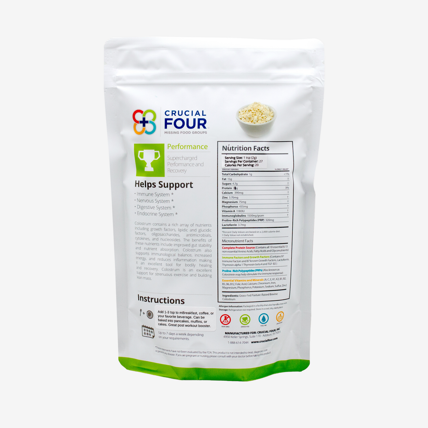 Crucial FOUR emphasizes quality and sustainability in sourcing their ingredients. They prioritize organic, wild-crafted, solvent-free, and peak-harvested raw materials, ensuring each product reflects their commitment to transparency and integrity. For instance, their mCollagen is derived from USA grass-fed sources and tested to be free of GMOs and glyphosate, while their mColostrum is grass-fed, low-temperature dried, and non-irradiated, boasting high nutrient density.