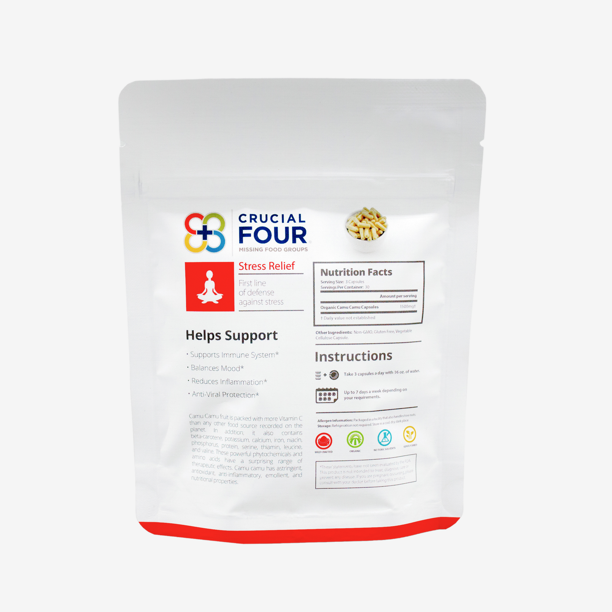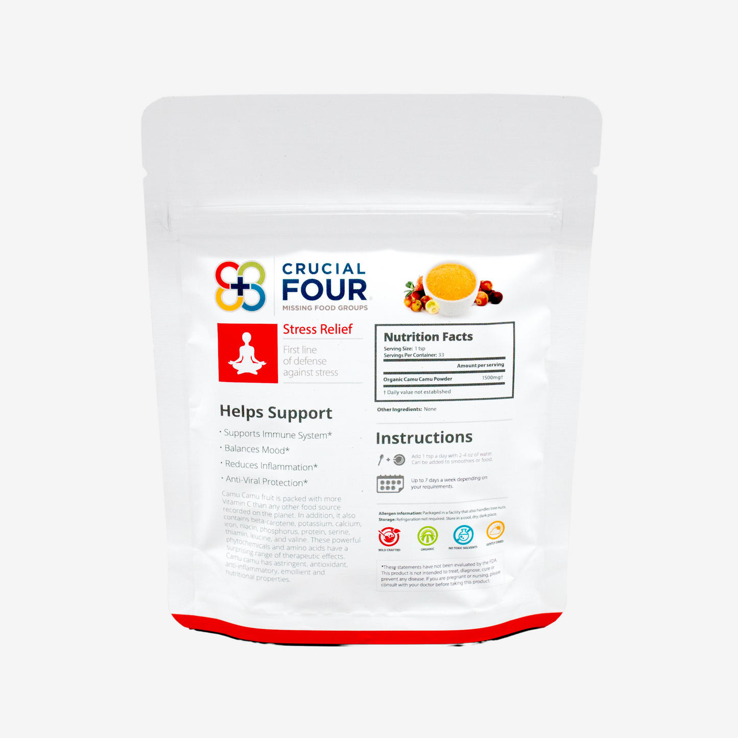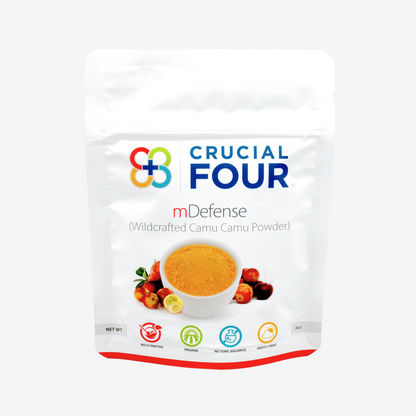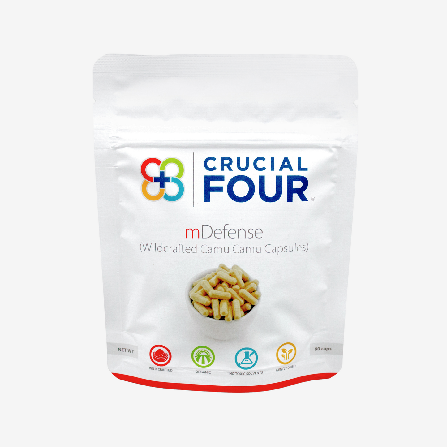 mDefense is wild harvested and organic Camu Camu, providing 30-50x more vitamin C than oranges! Swallow the capsule or open and mix it in water or smoothies. This superfood naturally supports immunity, collagen, and eyesight...Crucial Four does it right.