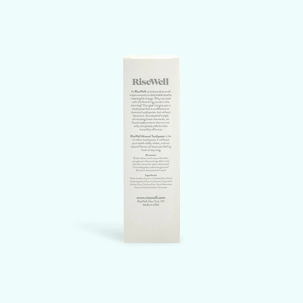RiseWell is an oral care brand that offers natural, fluoride-free products designed to effectively clean and protect teeth. Their product line includes mineral toothpaste, mouthwash, floss, and mints, all formulated with hydroxyapatite to support enamel health.