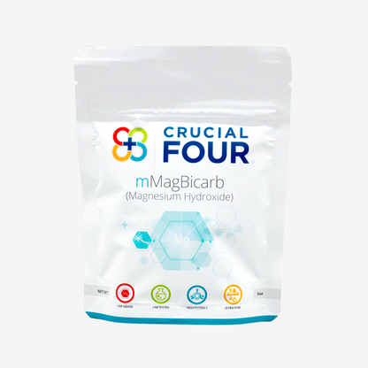 mMagBicarb is USP grade magnesium hydroxide that is tested at a 99.9% purity (no fishy, metal taste). We source our magnesium from the Dead Sea where we also get our other magnesium products. mMagBicarb must be infused into carbonated water in order to create magnesium bicarbonate, like nature intended.