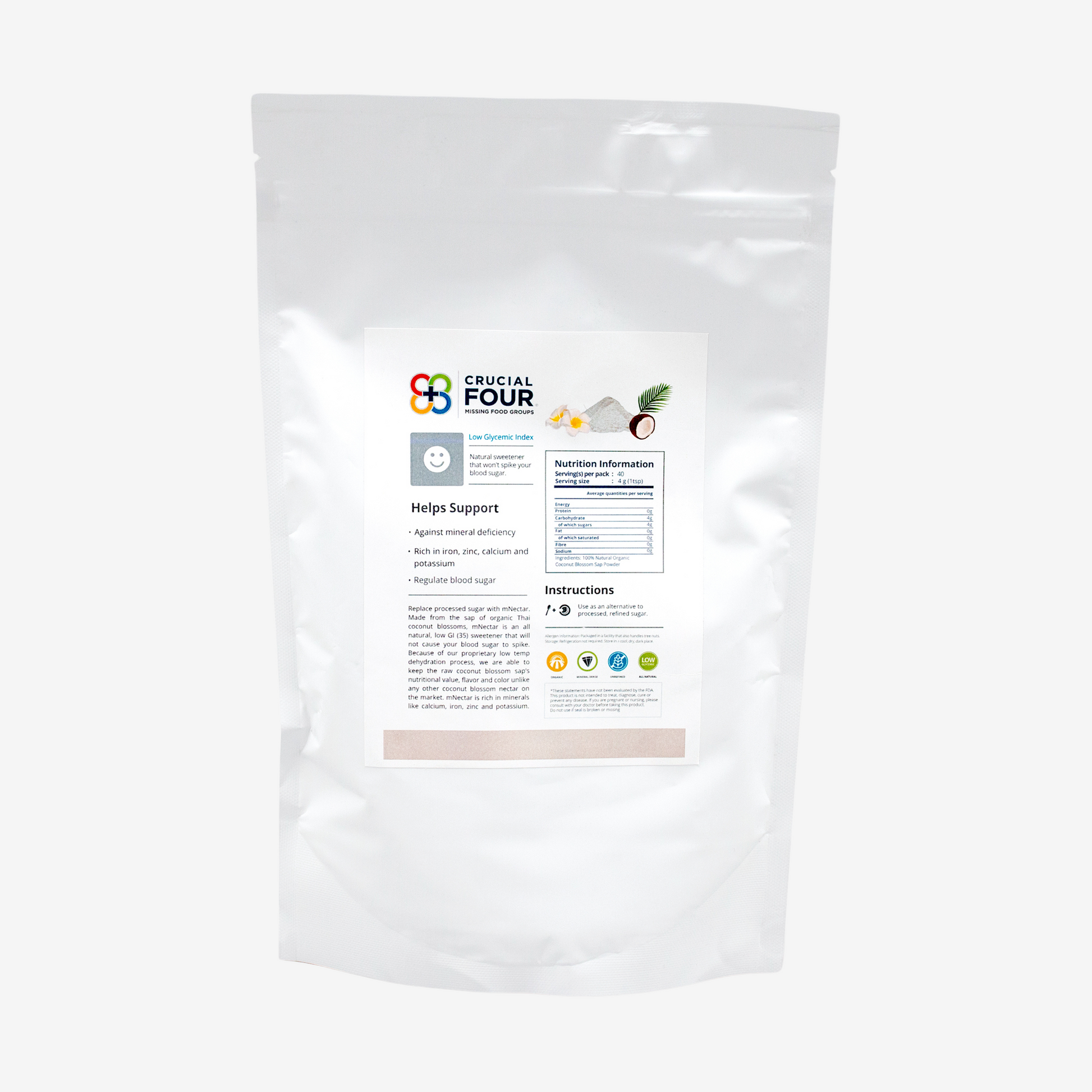 mNectar, derived from organic Thai coconut blossoms, offers a natural, low glycemic index sweetening solution, ensuring no blood sugar spikes, perfect for health-conscious individuals seeking a sugar alternative. Unique in its category, mNectar preserves the raw coconut blossom sap's nutritional richness, neutral flavor, and color through an innovative low-temperature dehydration process, making it a superior choice over other sugar alternatives. Packed with essential minerals like calcium, iron, zinc, and potassium, mNectar not only sweetens your dishes but also boosts your daily mineral intake, offering a deliciously healthy twist to your favorite recipes.