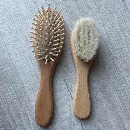 Give your baby the gentle care they deserve with this eco-friendly baby hairbrush, crafted from sustainable beech wood and featuring ultra-soft natural goat hair bristles. Designed to be delicate on your baby's sensitive scalp, this brush helps prevent tangles while providing a soothing massage that promotes healthy hair growth. The lightweight and ergonomic beech wood handle ensures a comfortable grip, making it easy to use during your baby's grooming routine. Perfect for daily use, this natural hairbrush is a thoughtful and practical gift for new parents who prioritize quality and sustainability.