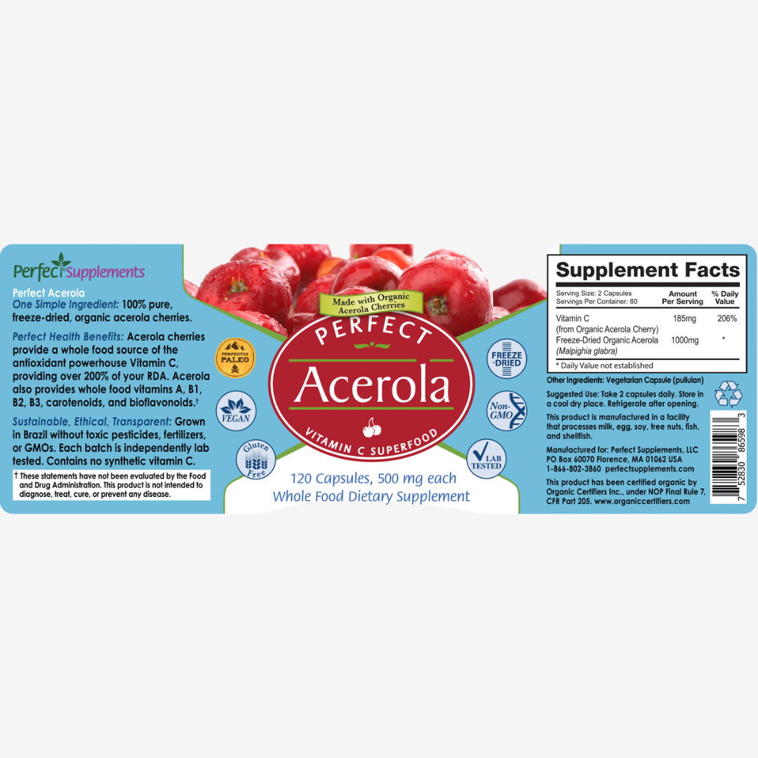 Capsules: You are not only getting 185mg of Vitamin C – you are getting all the other phytonutrients that are in the 1000mg of Freeze-Dried Organic Acerola.