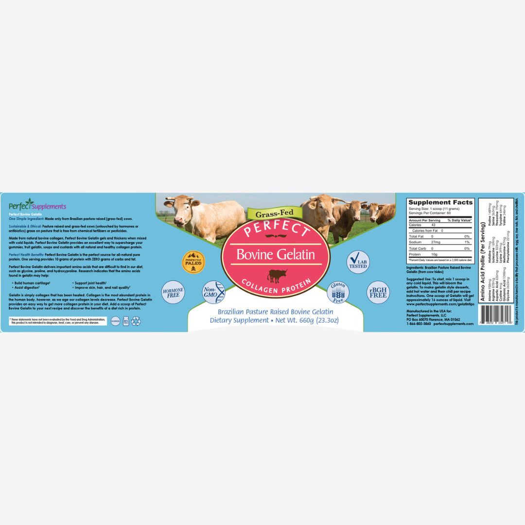 Description: Our Perfect Bovine Gelatin was made for YOU. It was not enough to provide you with the best All Natural, Non-GMO grass-fed, pasture raised source of collagen protein on the market, we also needed to make a product that was fairly traded, lab tested, and furthered our mission to be positive stewards of our planet.