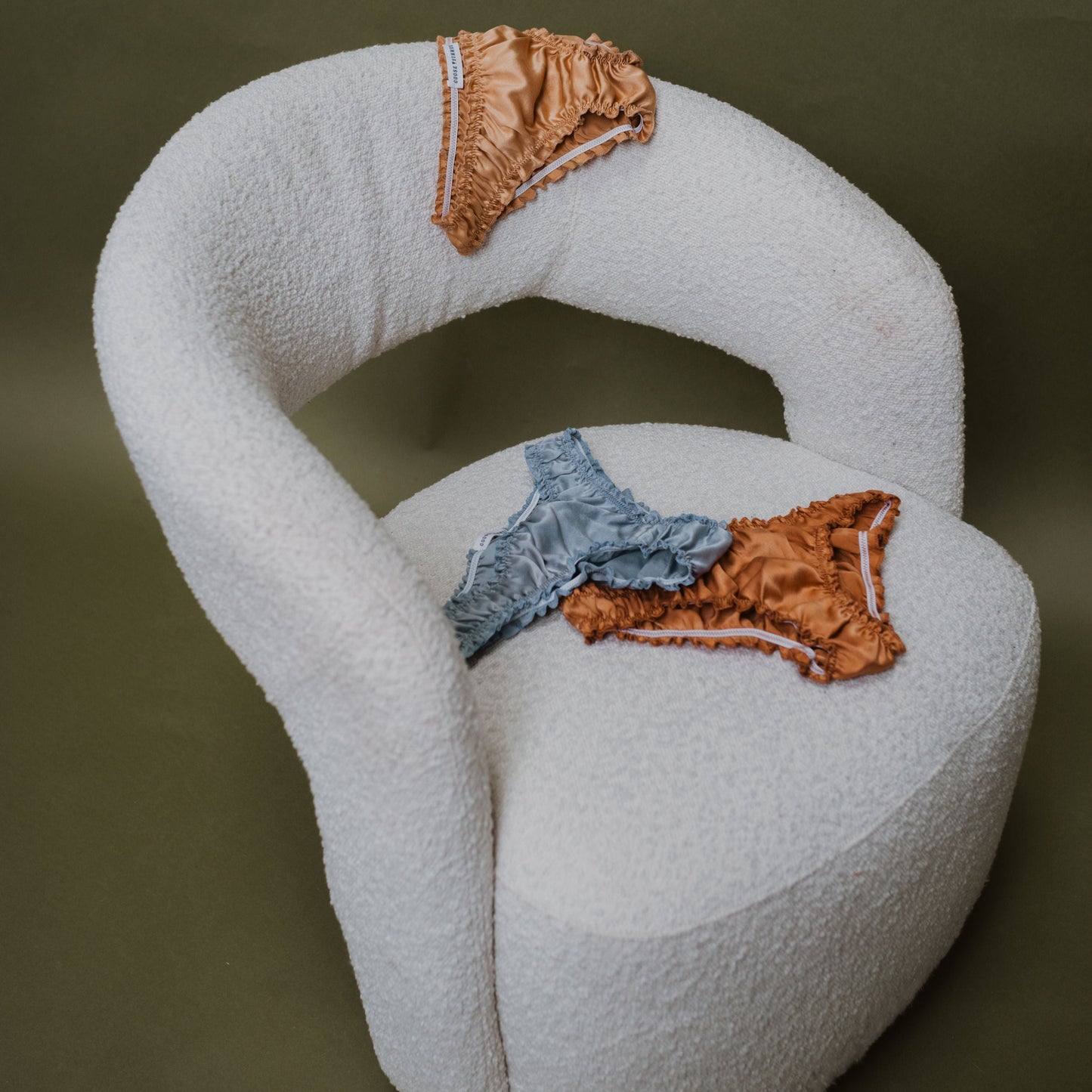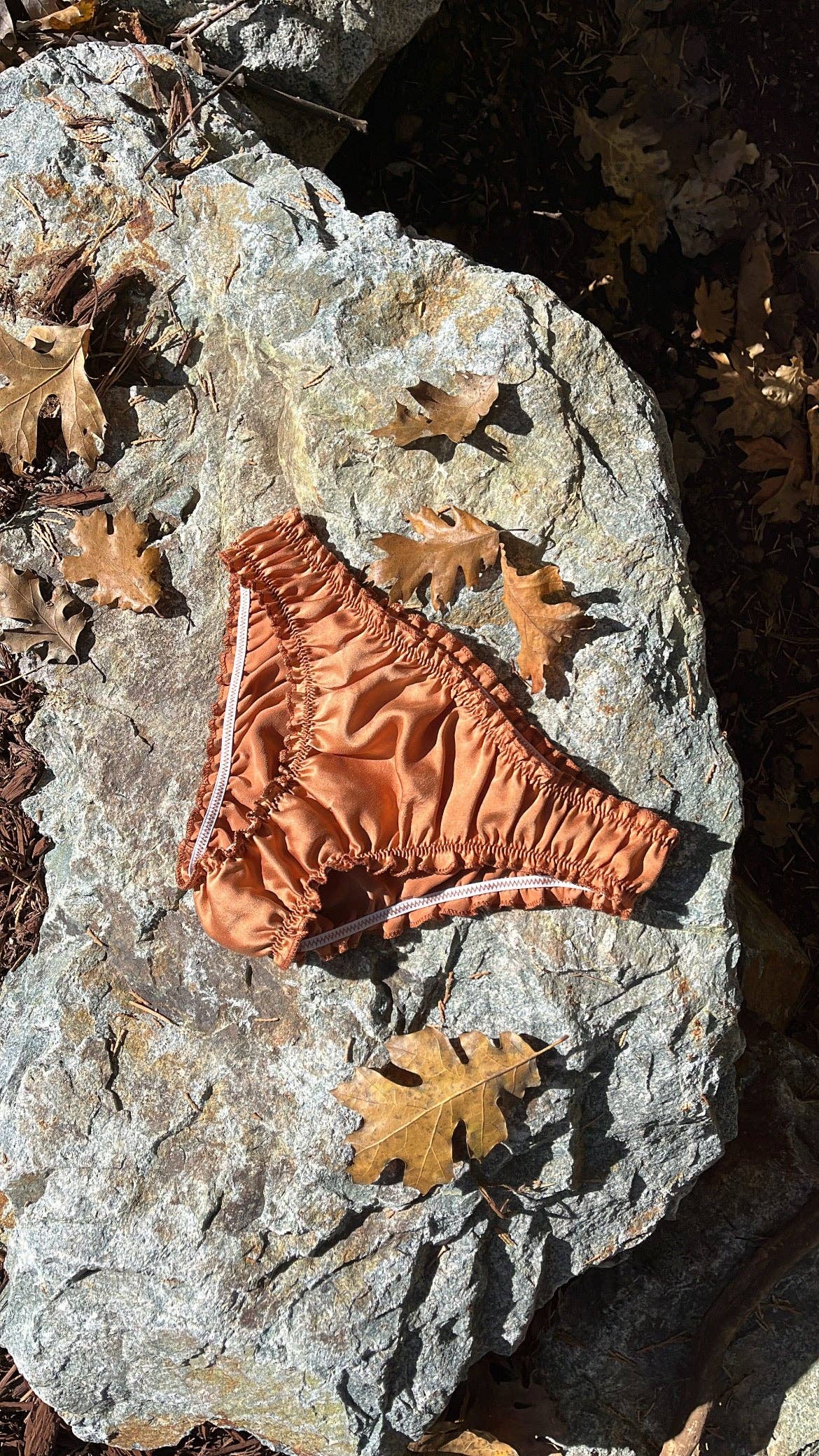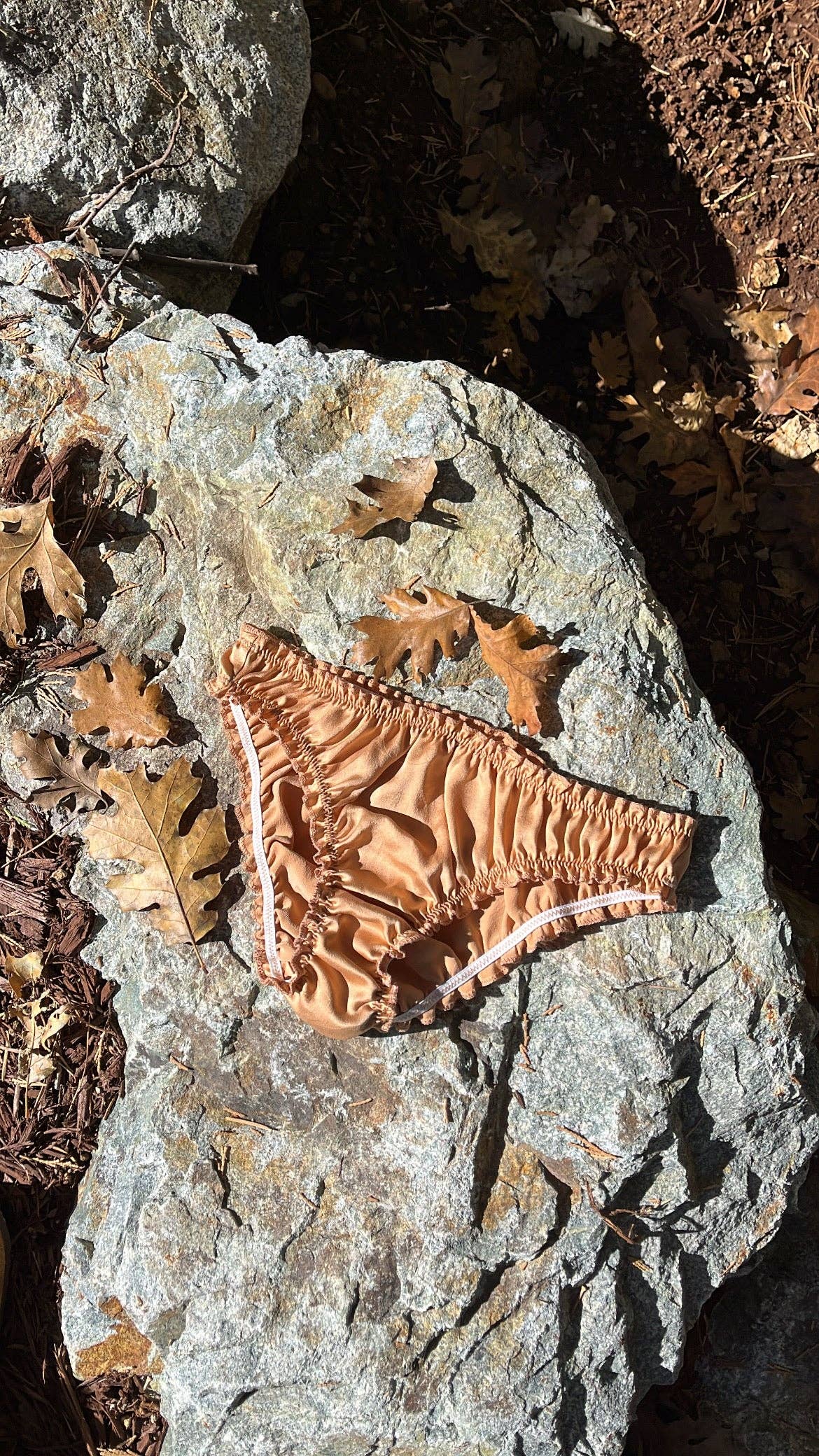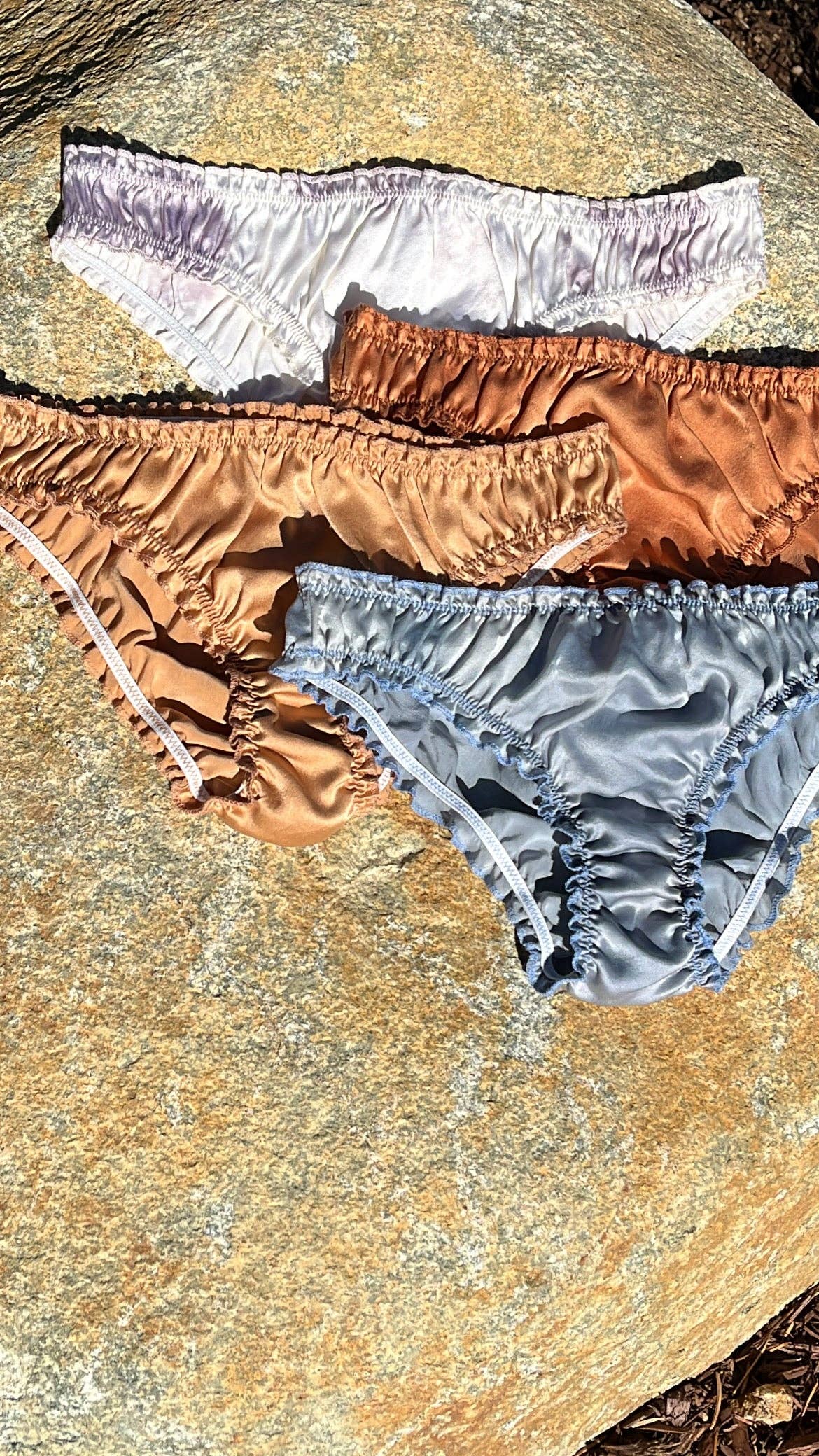 Description: 100% silk undies plant dyed in small batches in Los Angeles. Colors may vary and fade overtime; wash cold with like colors and line dry.