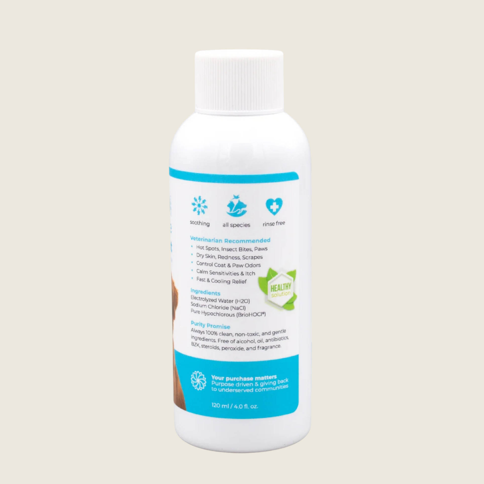 Directions: Shake lightly, part fur if needed, and dispense 2-3 sprays to affected area. Allow to air dry, no rinsing needed. Reapply 2-3 times daily until condition subsides. Continue use for daily maintenance. Can also be used to soak paws.