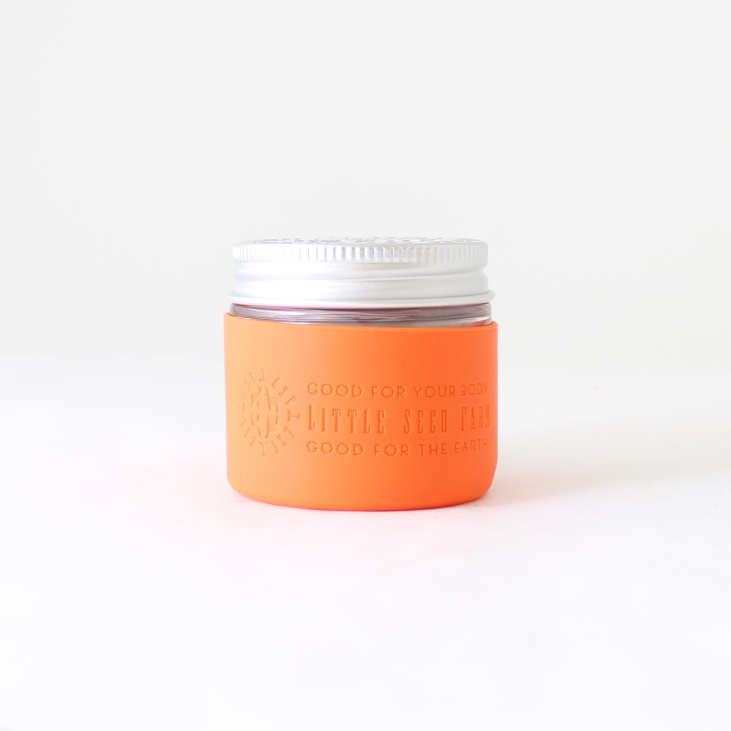 Our custom-designed silicone sleeves protect your LSF Glass Jars from chipping or breaking. Protect your valuable LSF products in your home or while you're on the go, without using plastic containers. These sleeves fit our Deodorant, Moisturizer, Botanical Butter and Booty Balm jars.