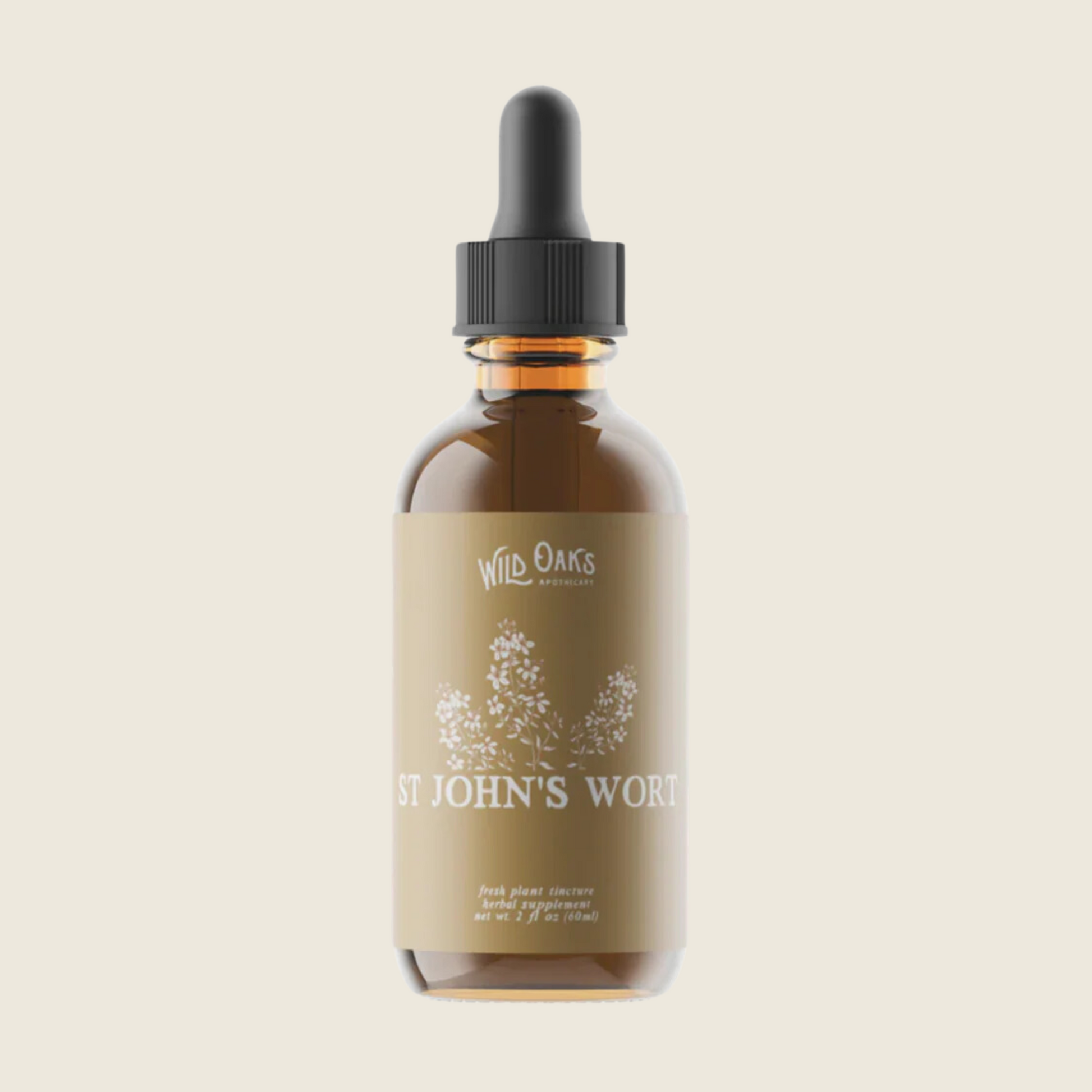 St. John’s Wort is a pretty, little yellow flower but when crushed, it turns red. The red is from capsicum, which is a powerful anti-inflammatory agent. The capsicum extracts in alcohol, leaving the tincture a beautiful, deep red color.
