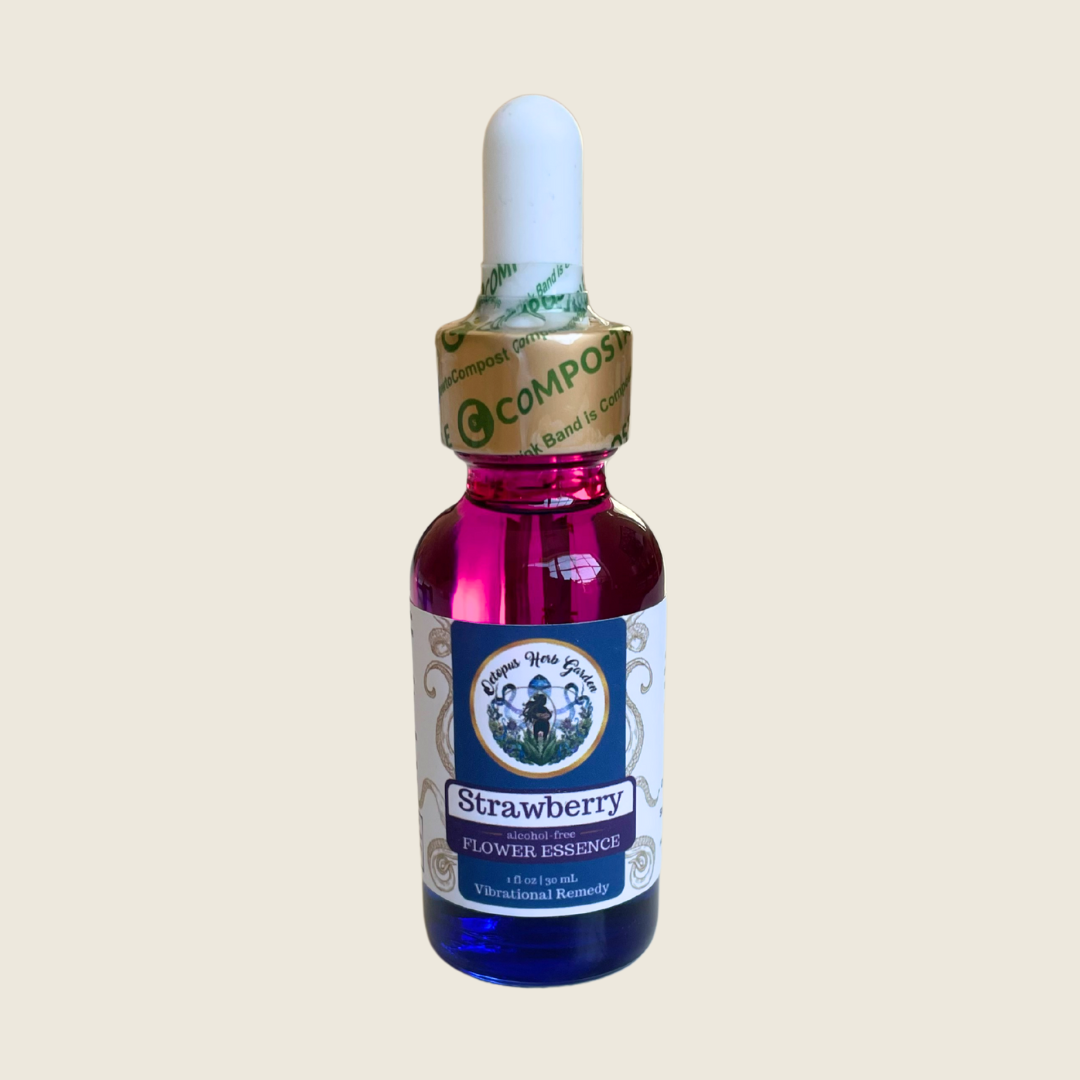 Comes in a 1oz glass dropper bottle filled with Certified Organic Glycerin (Derived from Flax), Purified Spring Water, & Strawberry (Fragaria ananassa) Flower Essence.