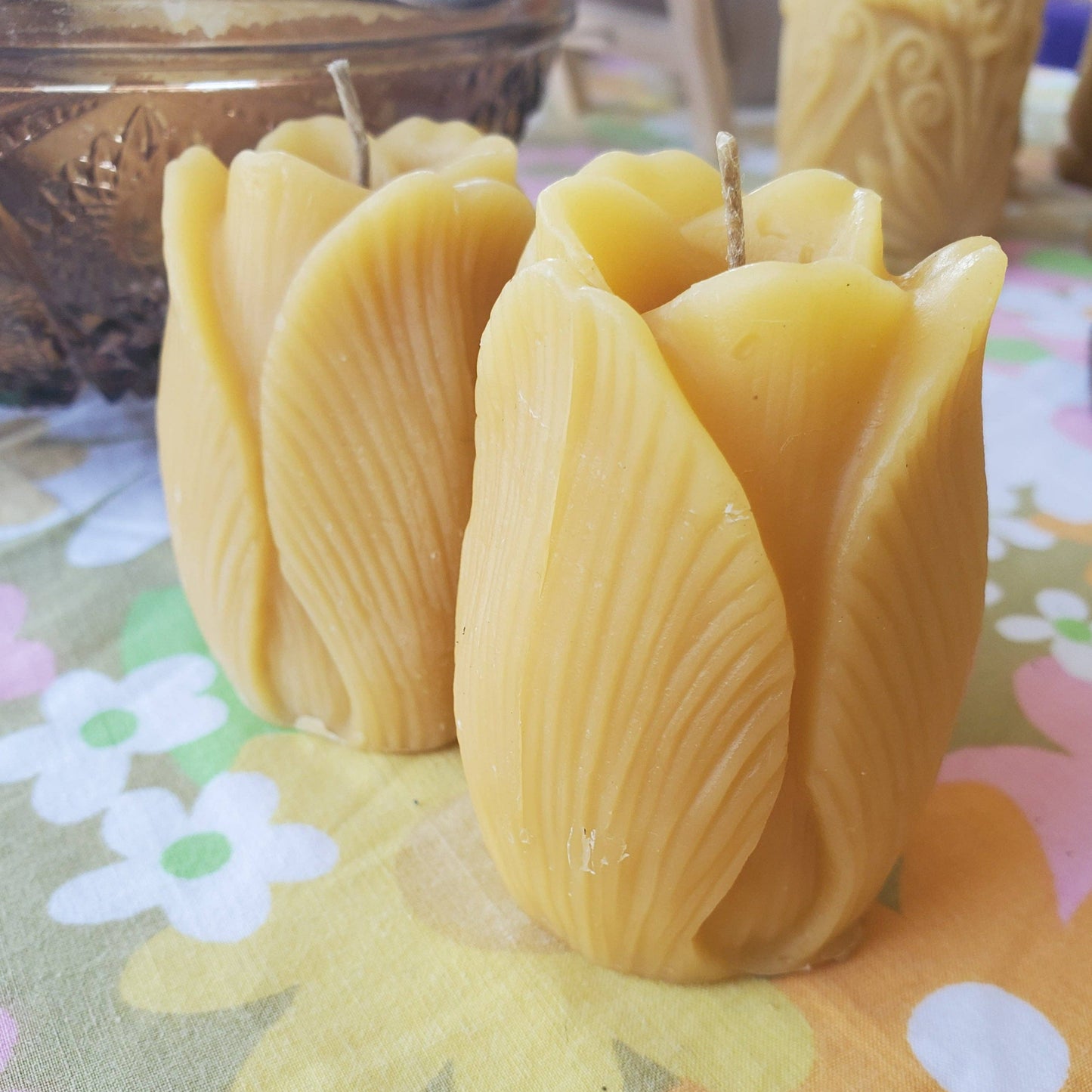 These candles are modeled after a tulip flower. Simple and beautiful. These will burn for several hours if you can bear to burn it!