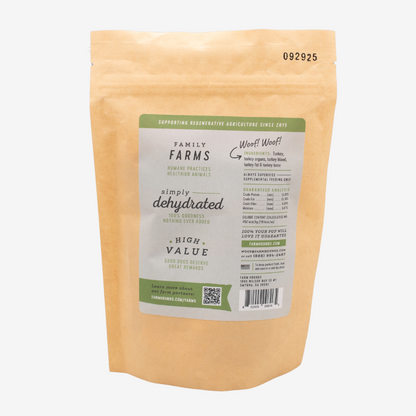 Only the GOOD stuff: Every bag is 100% Turkey that is transparently sourced from family farms! With the power of dehydration, we offer your pups treats that are free of salt, sugar, fillers, chemicals, and preservatives!