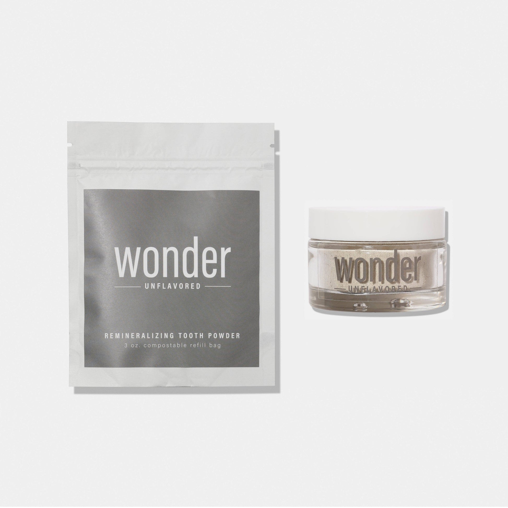 This unflavored remineralizing tooth powder is made from 100% toxin-free ingredients and offers a superior clean while supporting overall tooth and gum health. Wonder's tooth powder is formulated with microcrystalline hydroxyapatite (MCHA), a clinically studied mineral shown to help remineralize enamel and reduce the presence of cavities.