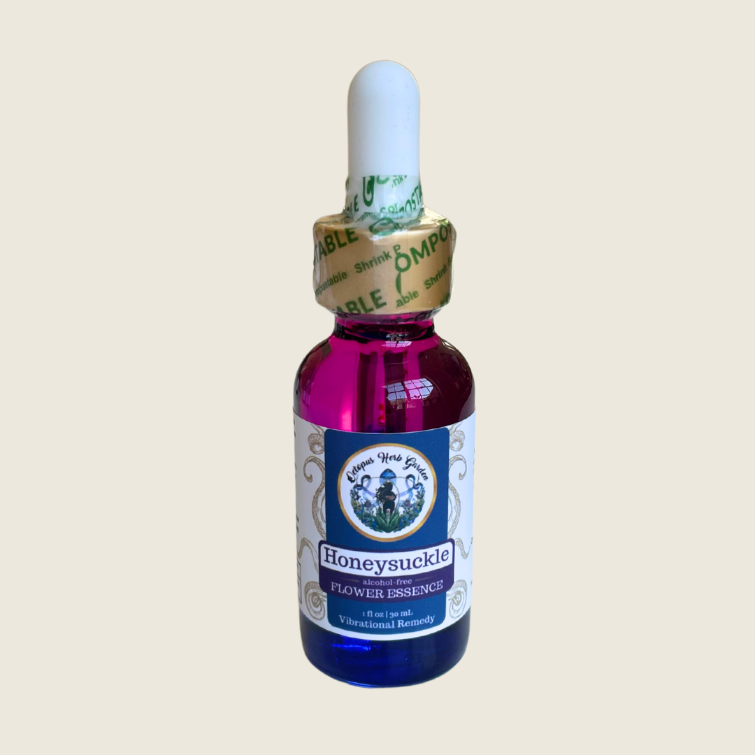 Comes in a 1oz glass dropper bottle filled with Certified Organic Glycerin (Derived from Flax), Purified Spring Water, & Honeysuckle (Lonicera caprifolium) Flower Essence.