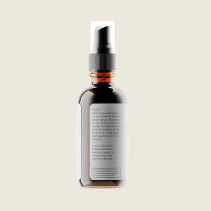 This spray is made from fresh or dried yarrow infused in witch hazel, with 14% alcohol.